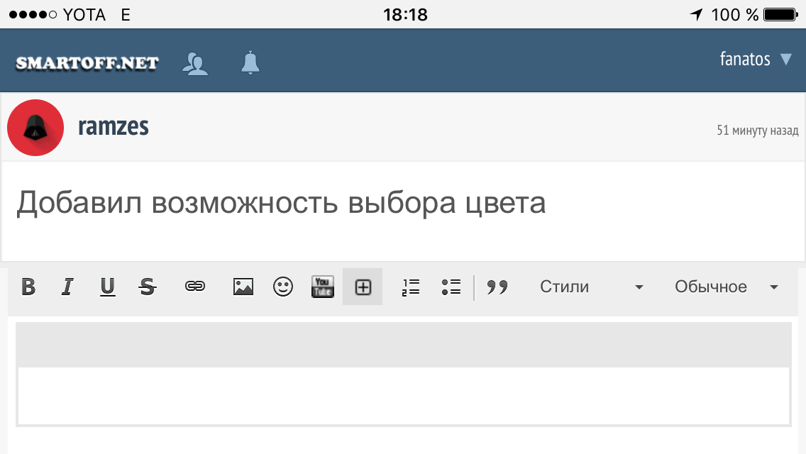 С андроида должно быть вот так, с компа стандартное виндовское окно палитры, с убунт и т.д. даже не знаю.. как и с вин фон