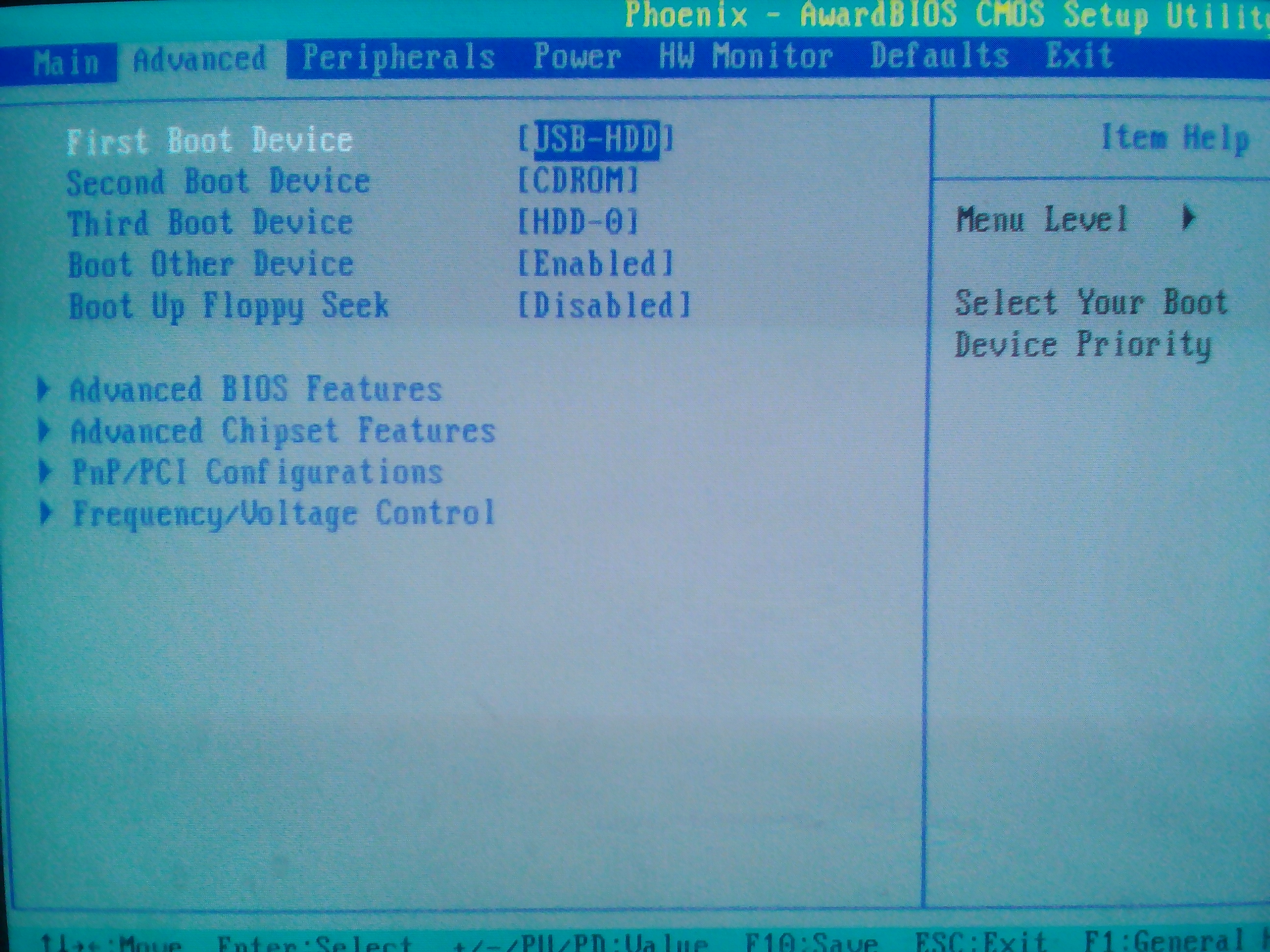 Сделал загрузочную флешку, в биосе выбрал usb-hdd