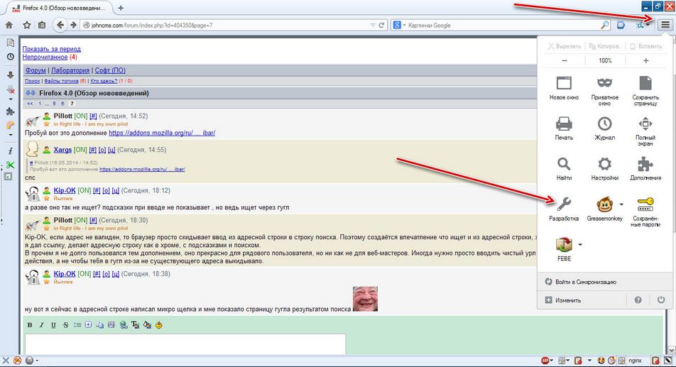 * Используется JägerMonkey, новый, более быстрый, JavaScript движок