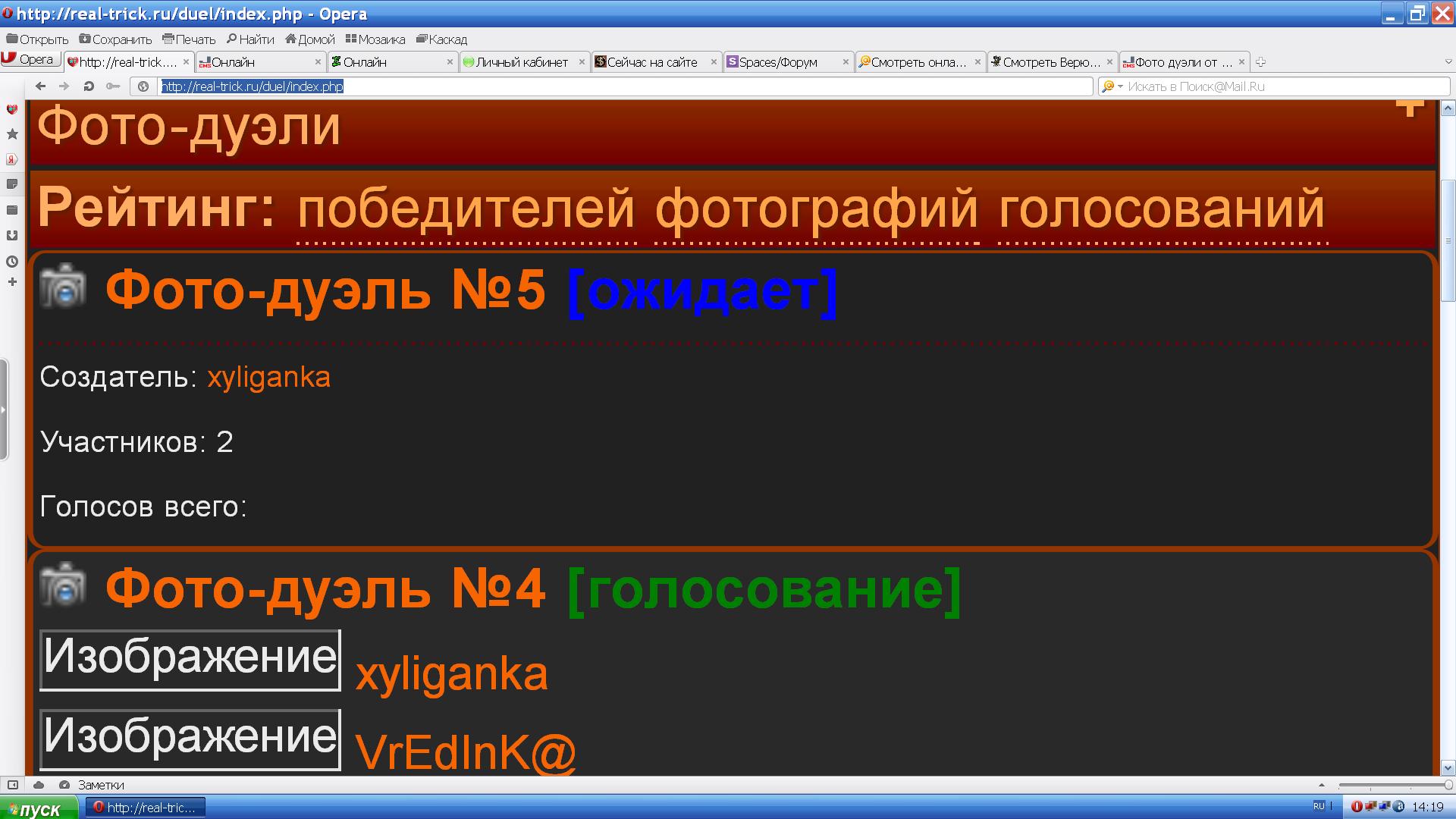 И вторая дужль ожидает уже больше месяца надо исправить или сроки или хотя бы дать возможность админам удалять такие дуэли ато они так и весят