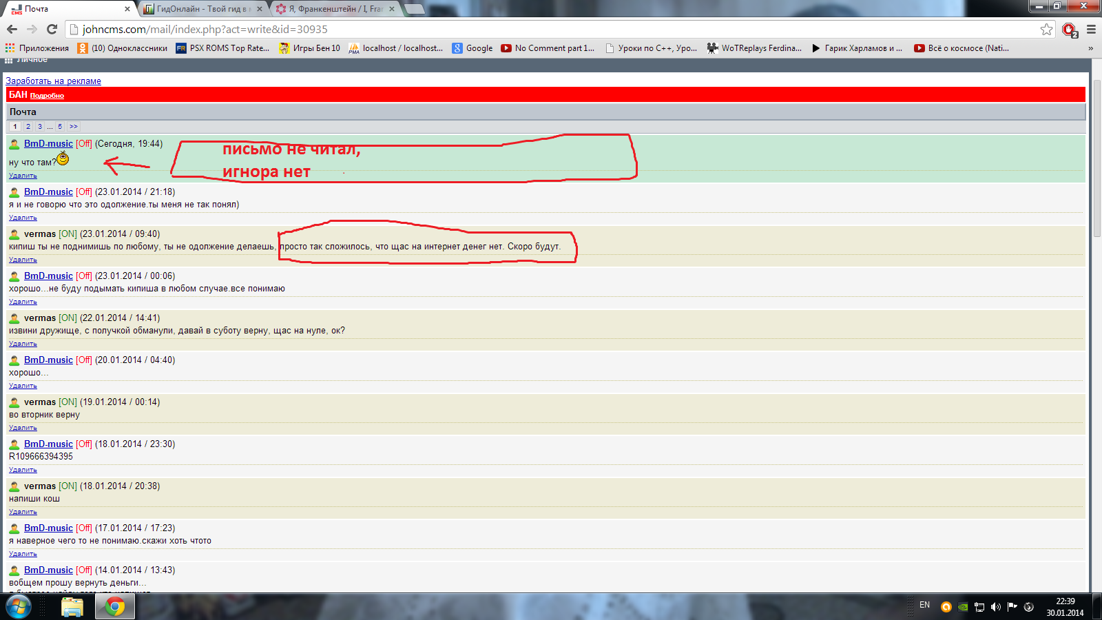 2.по поводу игнору смотрим 4ый скрин 14.01.2014 автор в сети в этот момент был и 15 и 16 и 17 когда было написано "Может я чего то не понимаю".Наконецто соивзолило ответить.