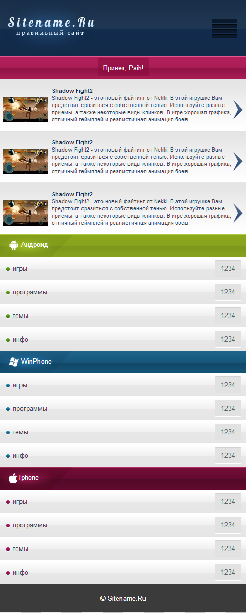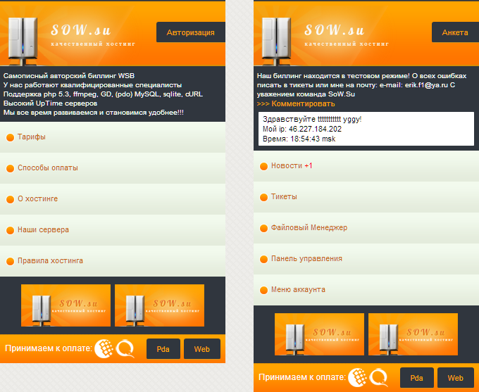 шаблон в 2-е страницы, для хостинга(в разработке)