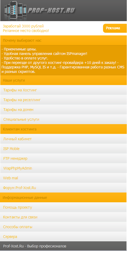 Пример дизайна для хостинга, делал за 100р