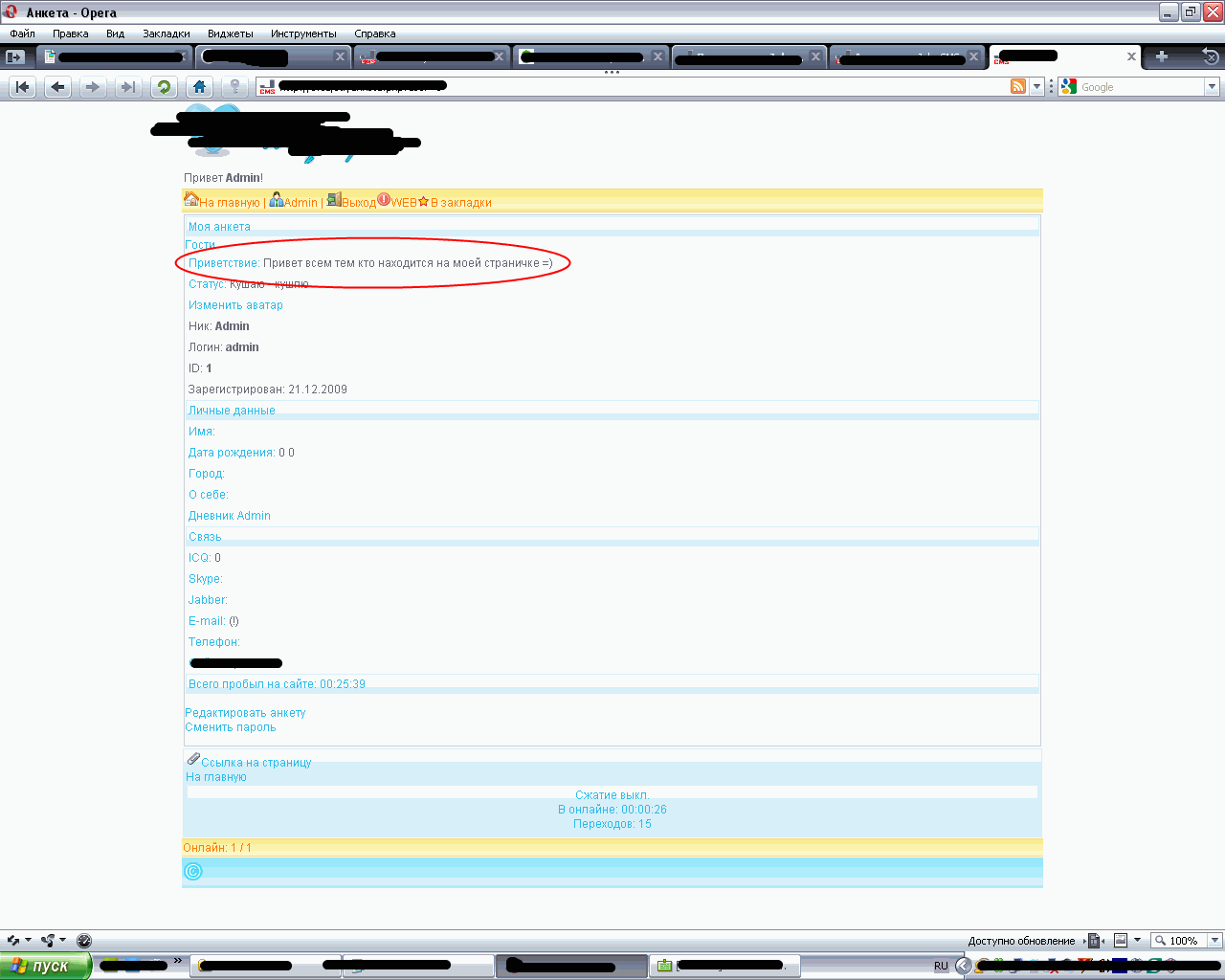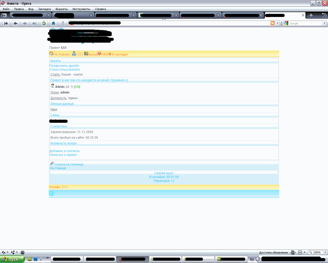 зы. вывод анкеты пользователя (скрин)