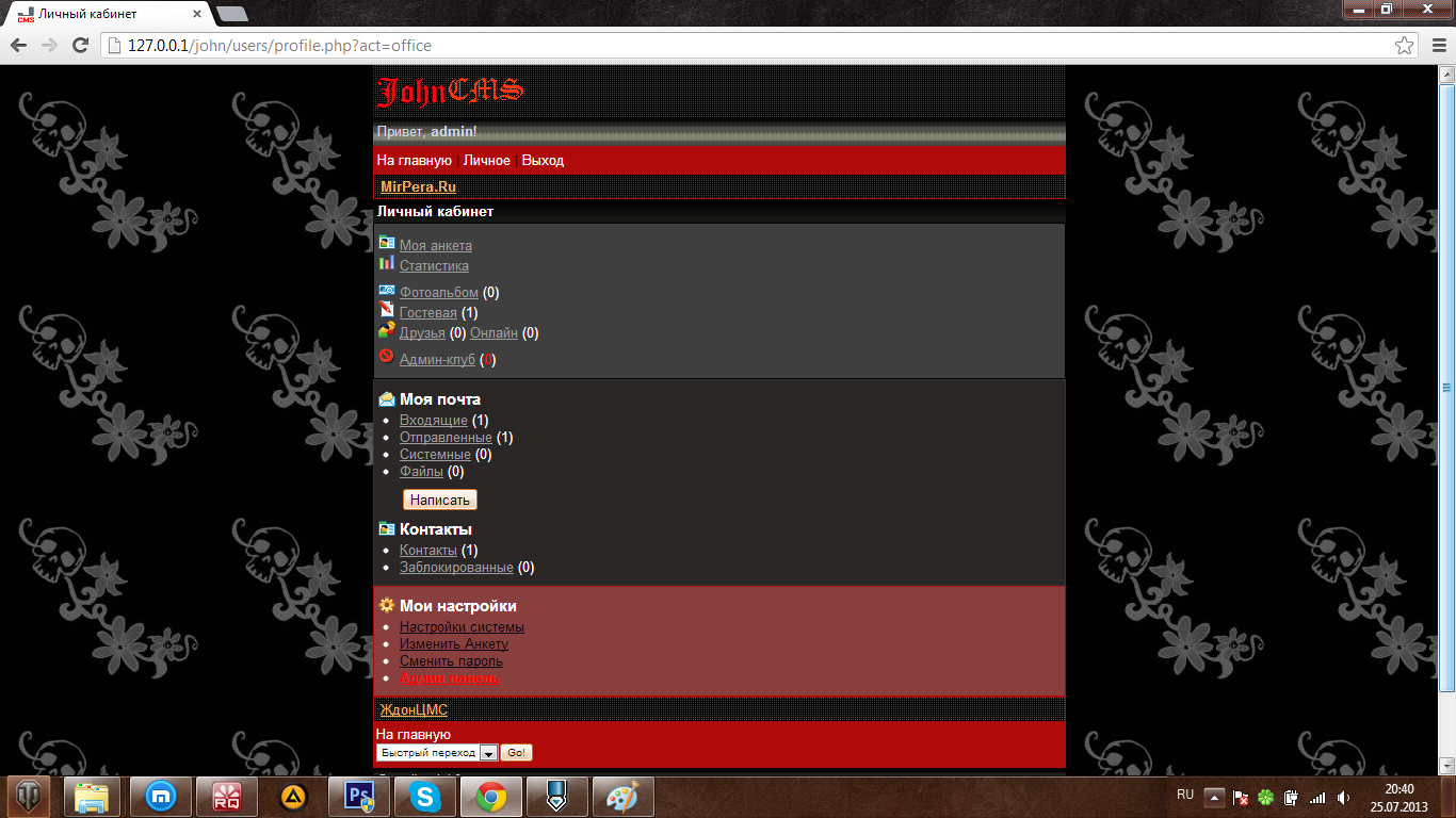 И так, поехали. Мое самое первое творение, дизайн в темных тонах. Косяки конечно же есть, но на то он и первый. Все, оправдался, теперь можно и залить на показ гг Скрины будут ниже, так что не спешите. 5 штук ![]()
