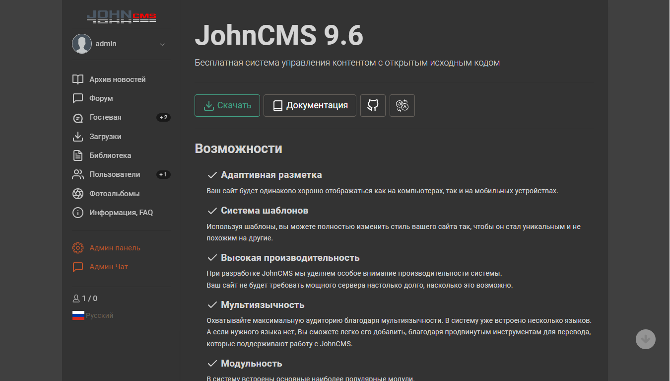 Темная тема для JohnCMS