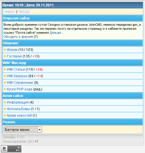 Скрин главной, диз делал для 4.4.0 но если нужно перепишу на любую другую версию
