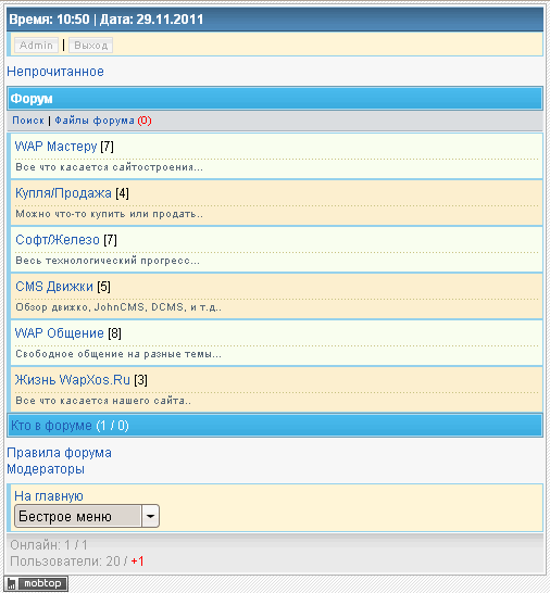 WapKat (29.11.2011/10:54)Дизайн хороший, только, мне кажется, лучше Желтый(Бежевый) цвет убрать!
