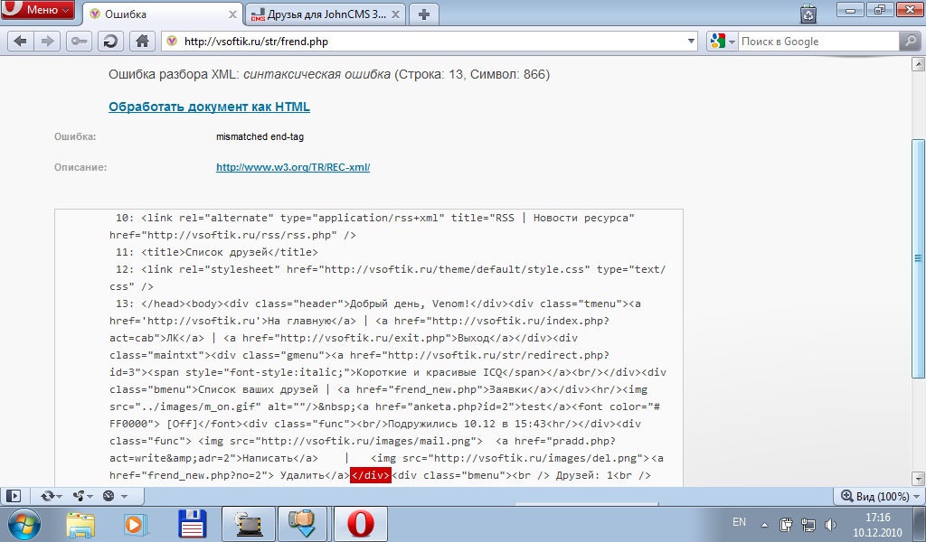 когда заявки смотришь там одна левая заявка весит, и от нее кидает на пустую стр. и ошибка разбора XML есть тоже