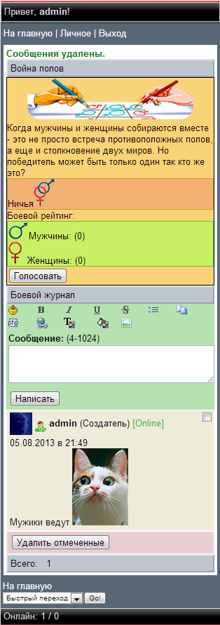 Представляю свой шуточный модуль "Война полов".