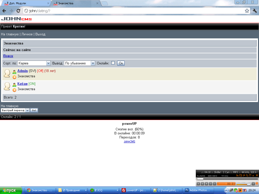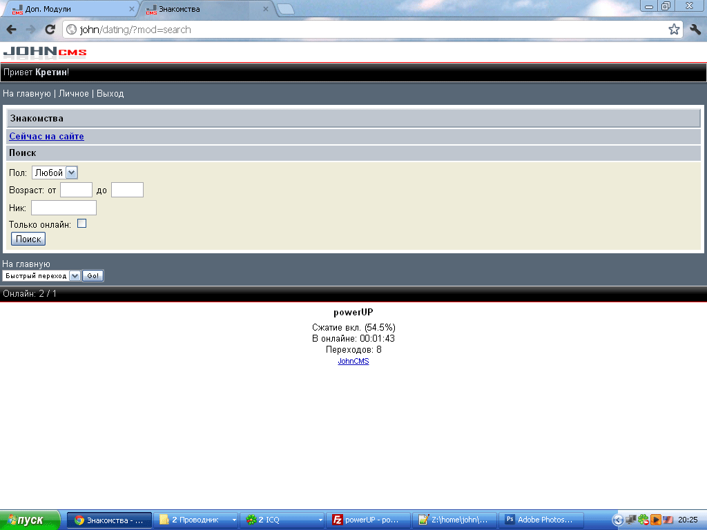 p.s. сделал для johncms 3.2.2 голого, если у вас стоят какие, то моды на анкету работоспособность не гарантирую.