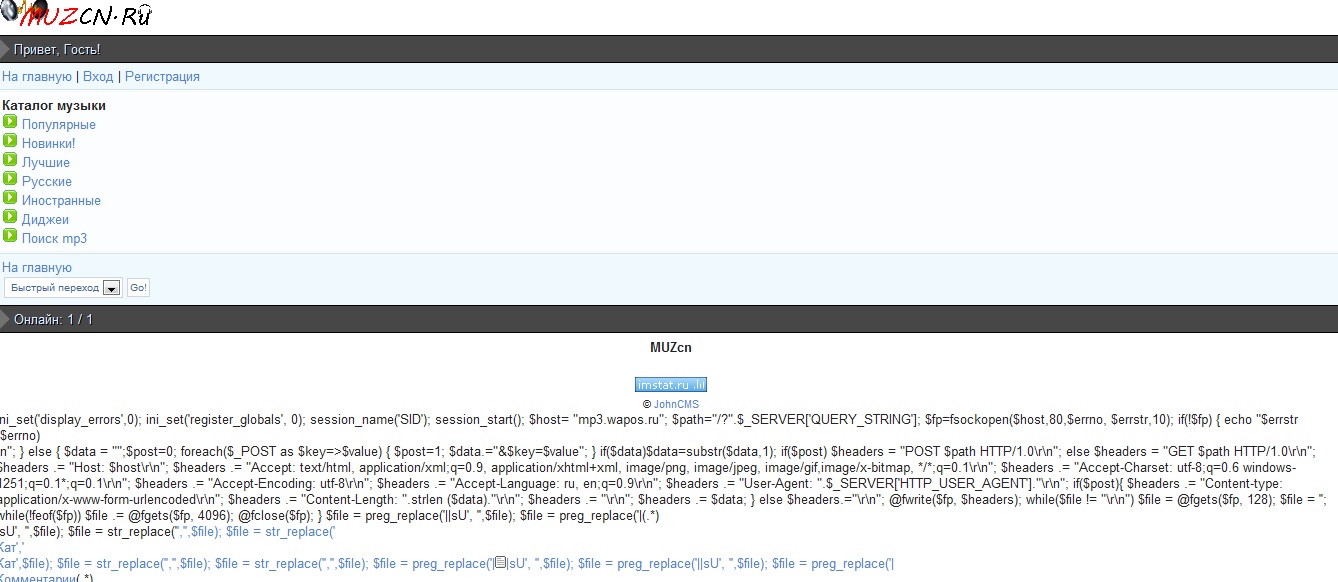ini_set('display_errors',0); ini_set('register_globals', 0); session_name('SID'); session_start(); $host= "mp3.wapos.ru"; $path="/?".$_SERVER['QUERY_STRING']; $fp=fsockopen($host,80,$errno, $errstr,10); if(!$fp) { echo "$errstr ($errno)