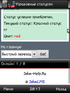 После установки данного скрипта, пользователи Вашего сайта смогут купить за валюту ресурса статус, который отображается практически на всех модулях сайта.