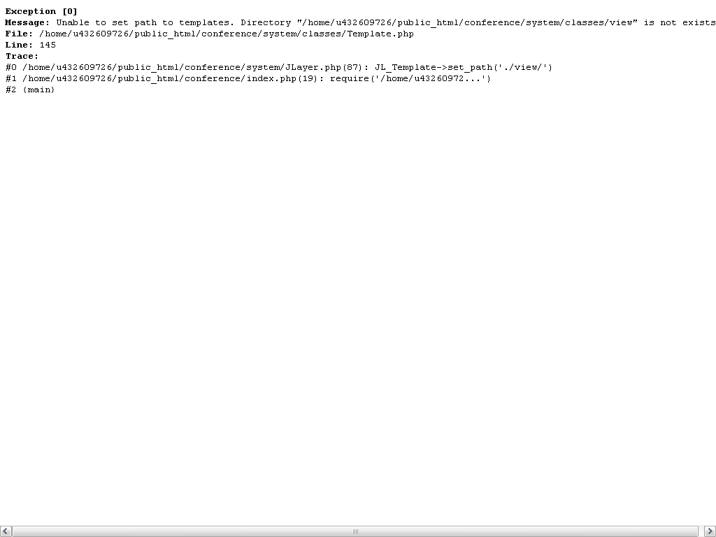 Message: Unable to set path to templates. Directory "/home/u432609726/public_html/conference/system/classes/view" is not exists.