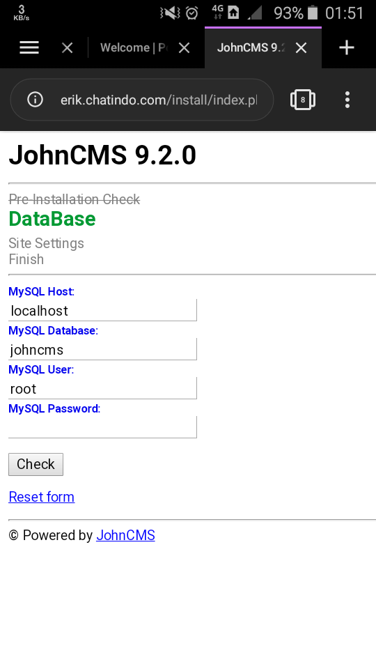 Help me Installing JohnCMS 9.2.0 stuk.