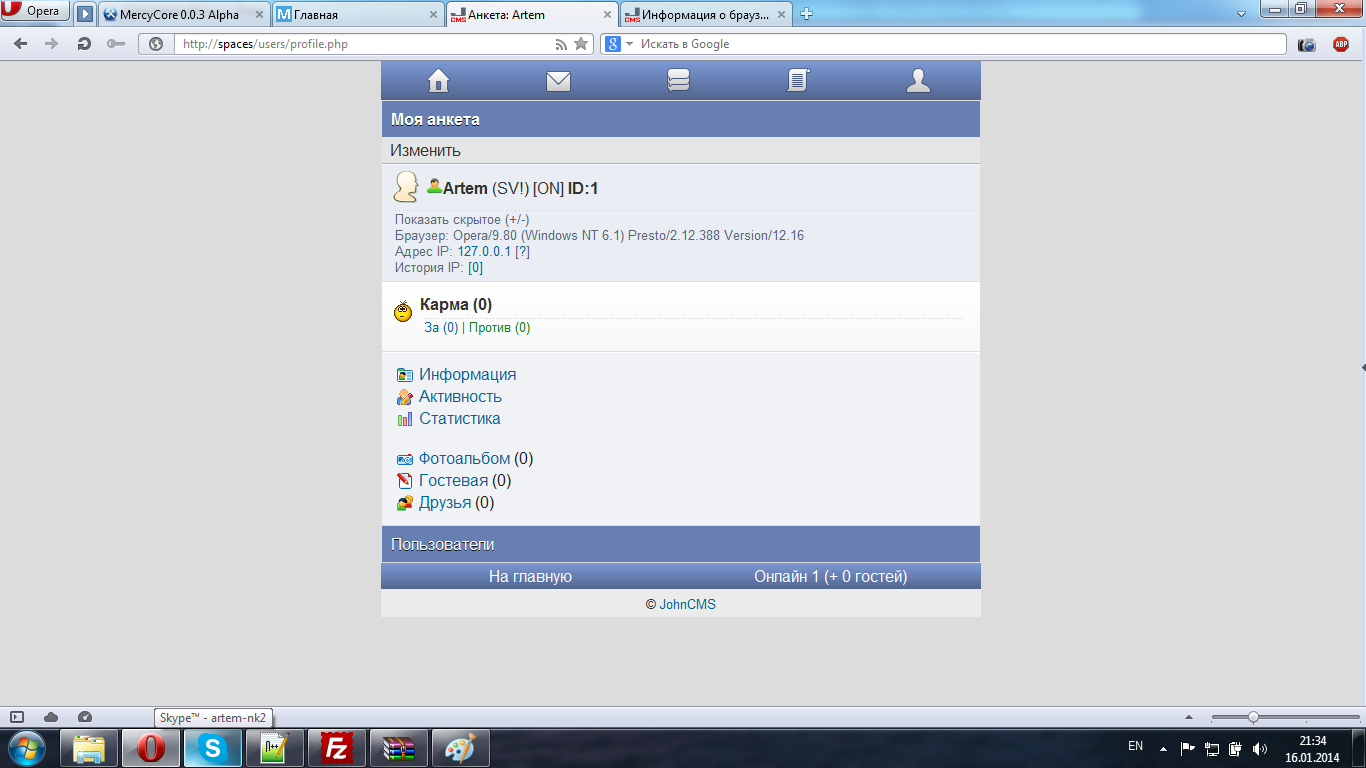 Данный хак скрывает инормацию о браузере, Адрес IP и т.п под спойлер. На форуме не работает, позже выложу для форума!