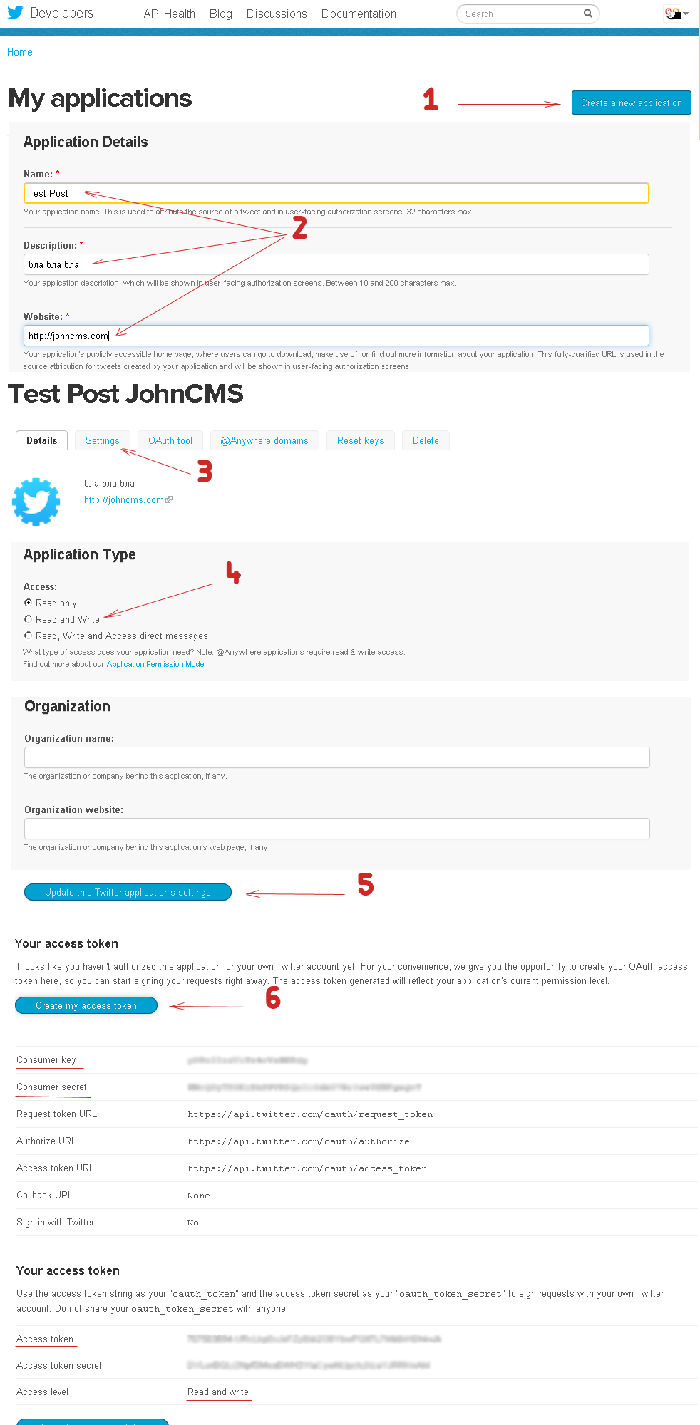 Для установки потребуется создать свое приложение в панели разработчика twitter'а https://dev.twitter.com/apps