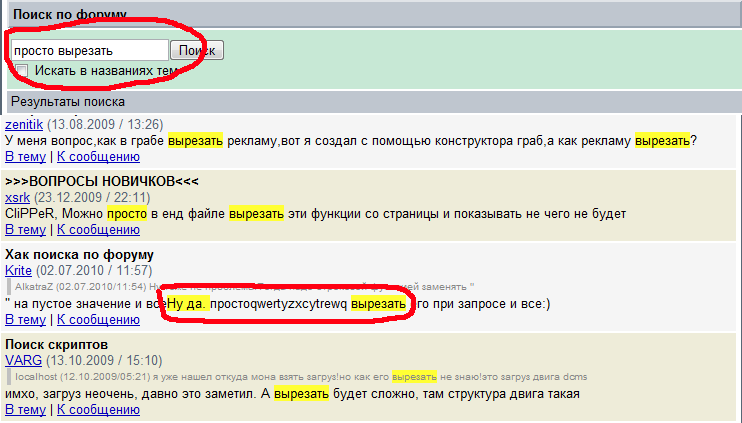 Кстати, надо еще доработать, чтоб подсвечивал слова в названиях тем.