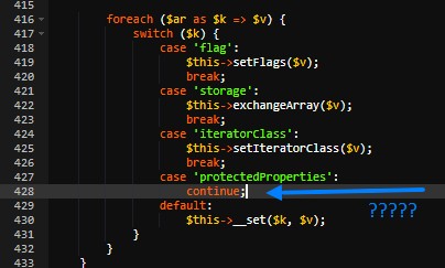 : "continue" targeting switch is equivalent to "break". Did you mean to use "continue 2"? in