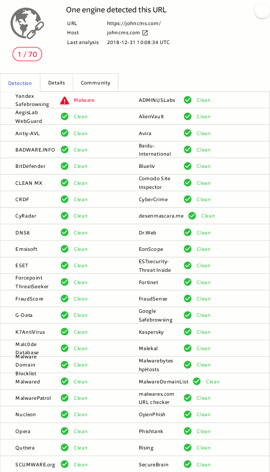 Как вариант, создаются сайты на Джоне с вирусами. Т.к. на каждой странице в коде есть johncms в шапке и подвале, Яндекс посчитал что это Джон основа всего этого. Но с другой стороны, wp, joomla так же должны были попасть под блокировку ..