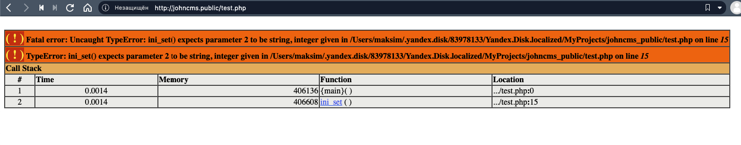 echo $test['test']; # kantry (27.12.2019 / 22:23)Короче все параметры с упоминанием error у меня такие же. Я даже х.з. чё ему надо )