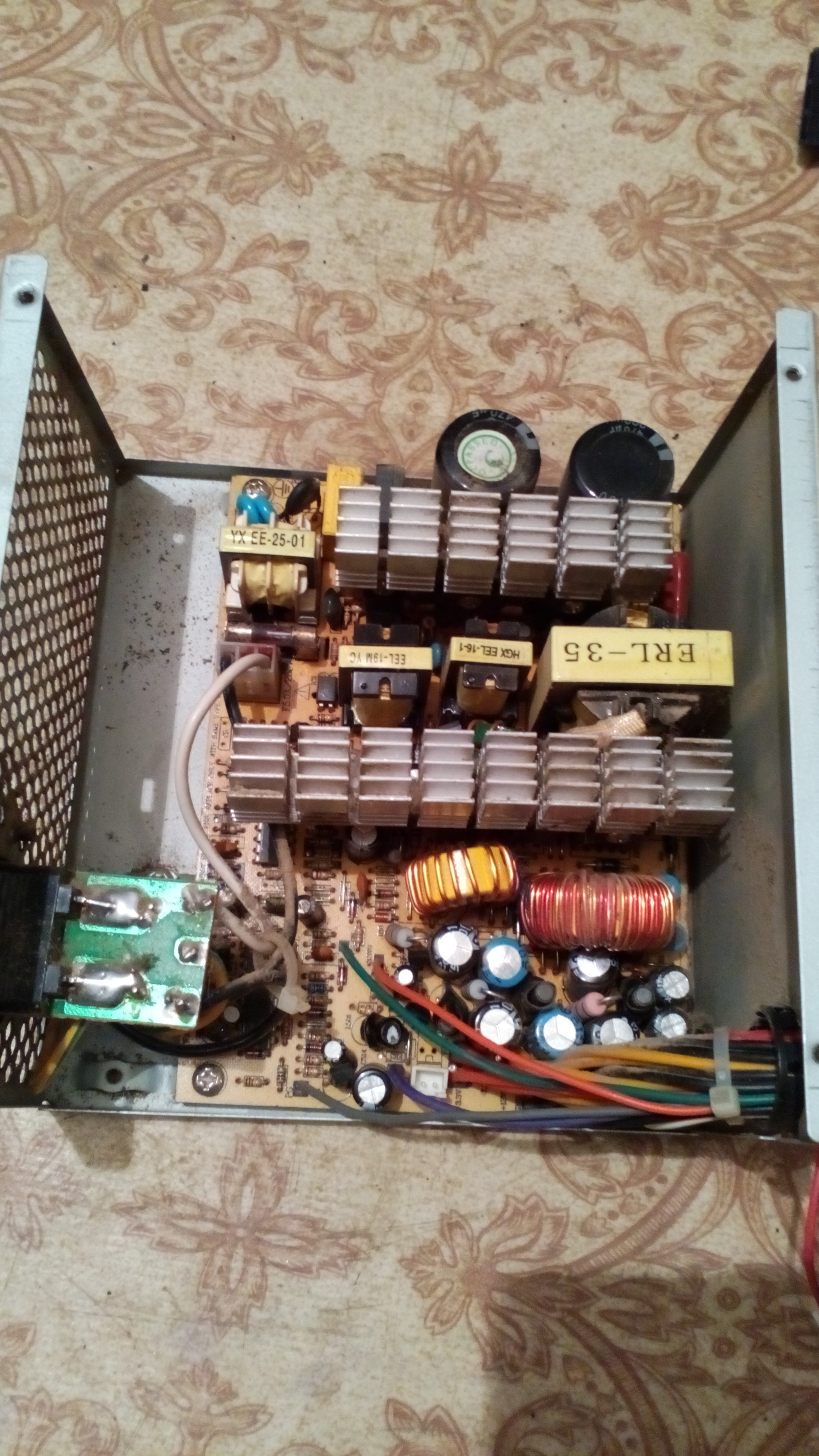 На днях как то неожиданно отключили электричество, комп был включён, после возобновления ЭП комп перестал включаться, ну естественно начал "прыгать" от малого, решил воткнуть другой БП, вуаля!!! комп заработал. Разобрал сгоревший БП, предохранитель целый, зато есть конкретно так вздувшийся и окислевшийся кондер. Маркировки на нём самом нет из за того что оболочка сплавилась, за то на плате вроде как есть, обозначение L501, полазил в гугле и не найдя ничего подобного решил задать вопрос тут.