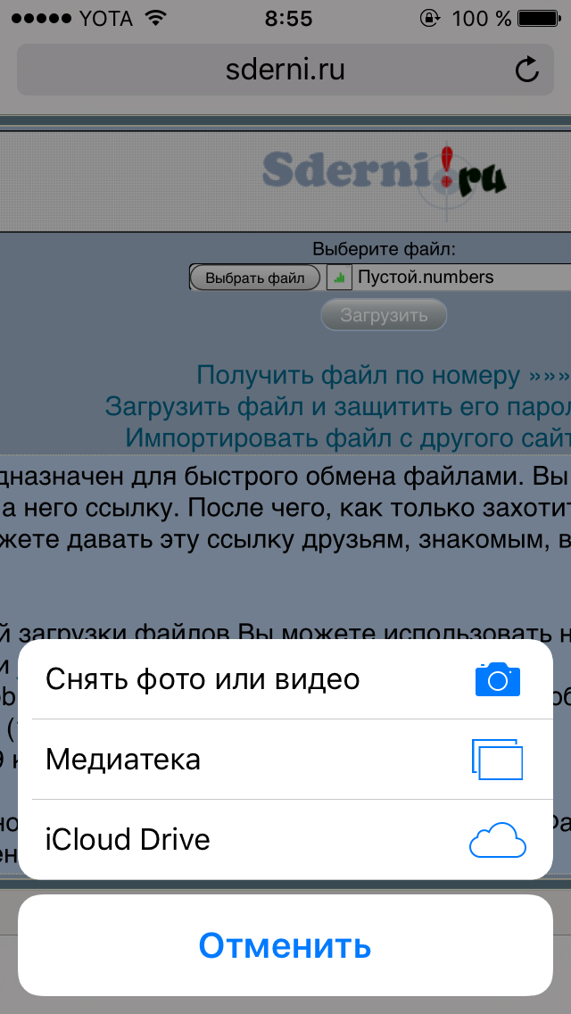Как с айфона загрузить зип файлы на хост??