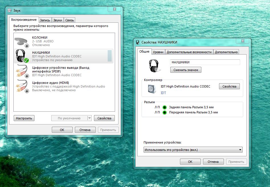 ReaLs, в свойствах устройства в графе "Разъём" должны быть указаны разъёмы зелёного цвета 3,5 мм