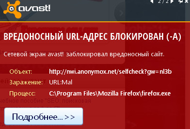 http адресс заражён, то что объект, а так как он отрывается мазилой, то аваст блокирует её