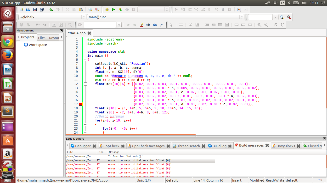 cout << "Введите значения a, b, c, e, d: " << endl;