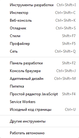 В хроме зачетные инструменты разработчика