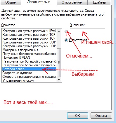 В Windows смену MAC-адреса можно осуществить встроенными средствами ОС — в свойствах сетевой платы, во вкладке «Дополнительно» для редактирования доступно свойство «Сетевой адрес» (англ. «Network Address»), позволяющее указать нужный MAC-адрес.