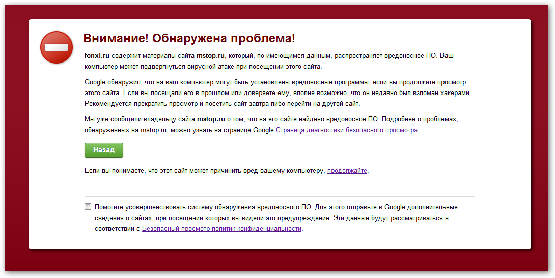 сегодня зашёл на свой сайт, а мне Гугл хром предупреждение выдал, см. скриншот