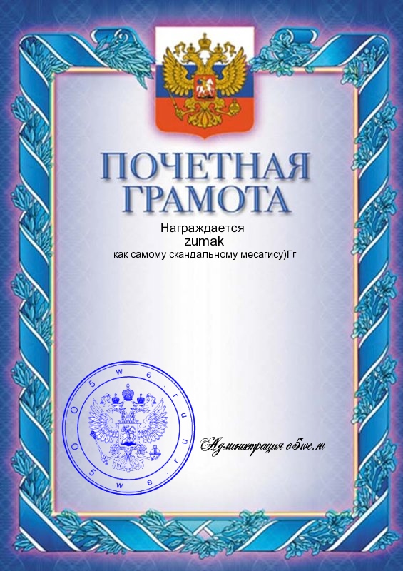 Награждается : zumak за : как самому скандальному месагису)Гг