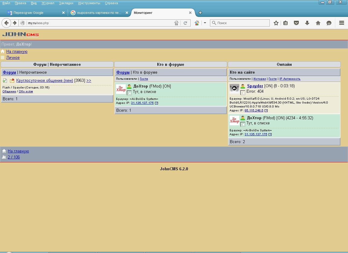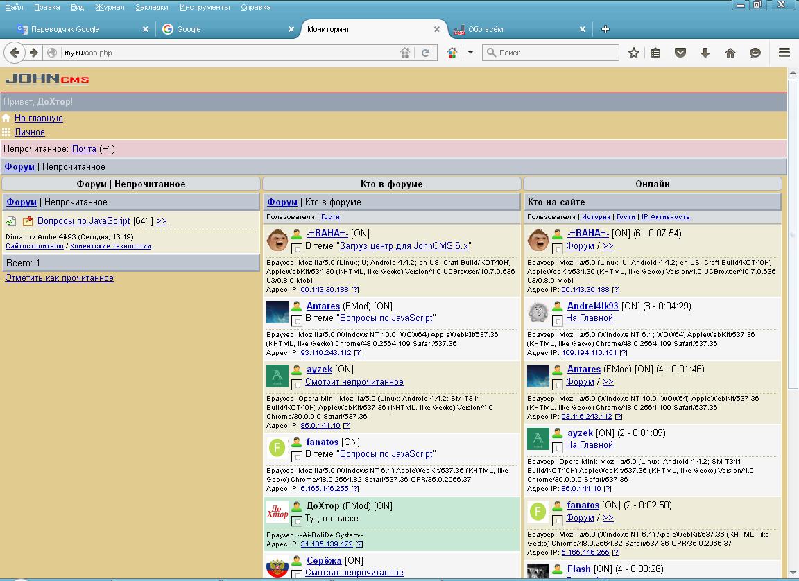 Мониторинг JohnCMS