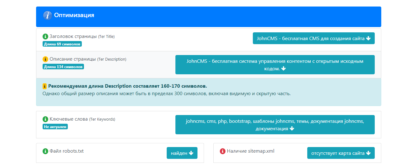- Подсказки по тегам (title, description, keywords)