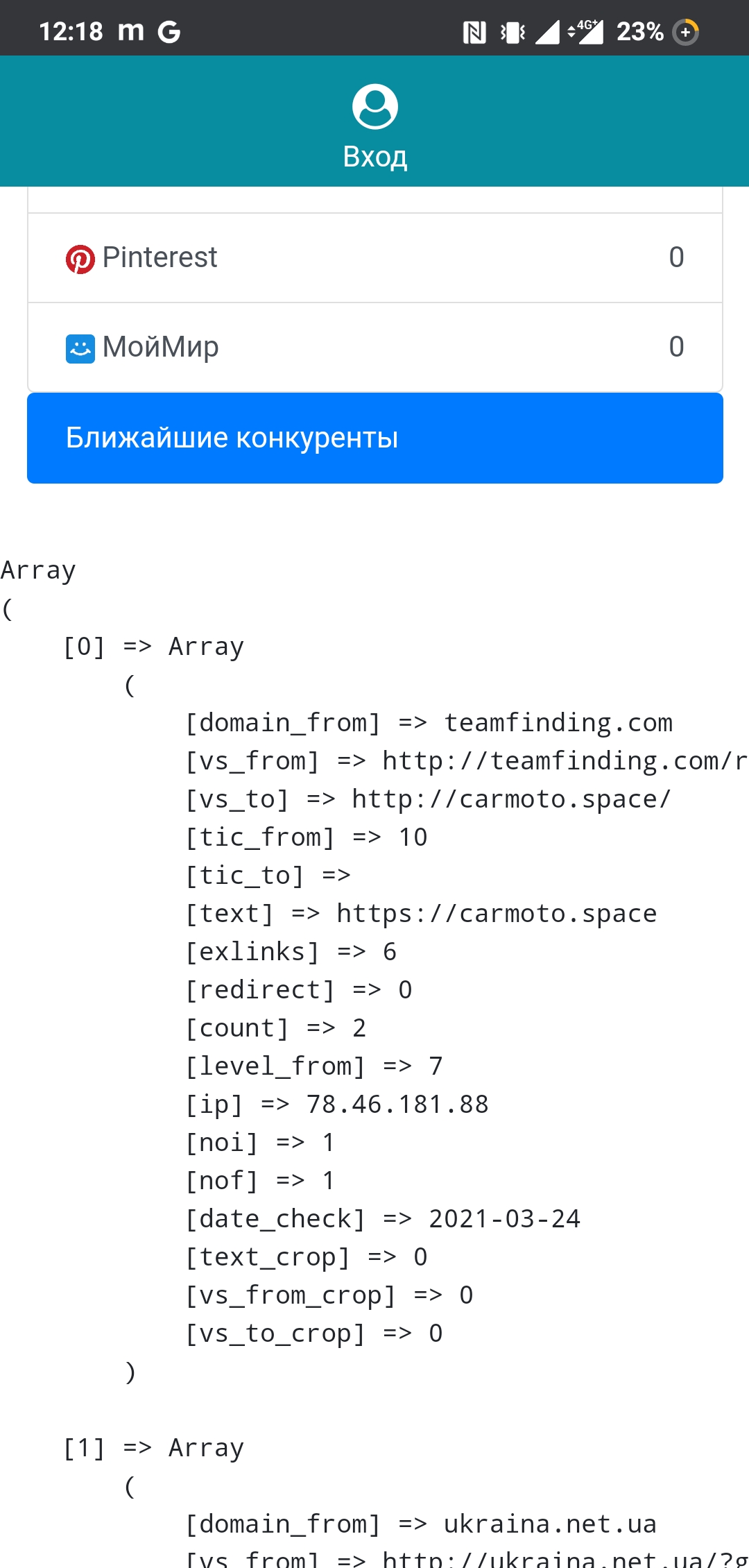 - Отображение списка конкурентов (схожих по контенту ресурсов)