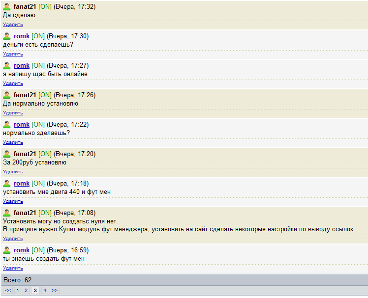 Юзер http://johncms.com/users/profi ... 32163 кидала. У нас был договор на то что я установлю johncms4.4.0 и фут менеджер а он мне 200руб. Но после завершения работы он перестал отвечать.