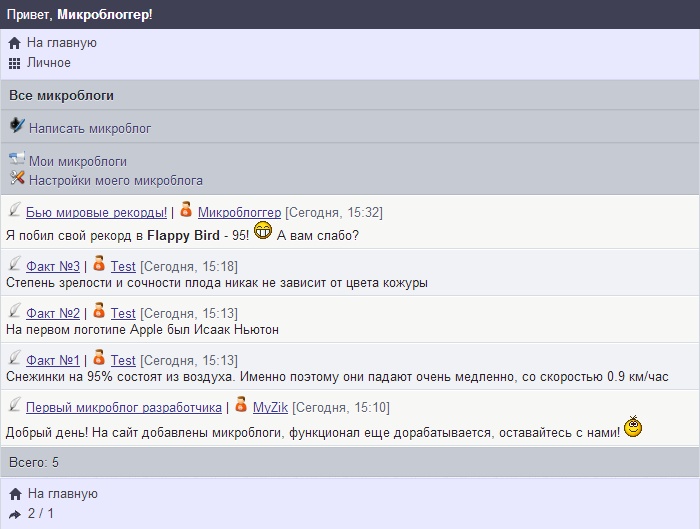 [+] Просмотр всех микроблогов отдельного пользователя.