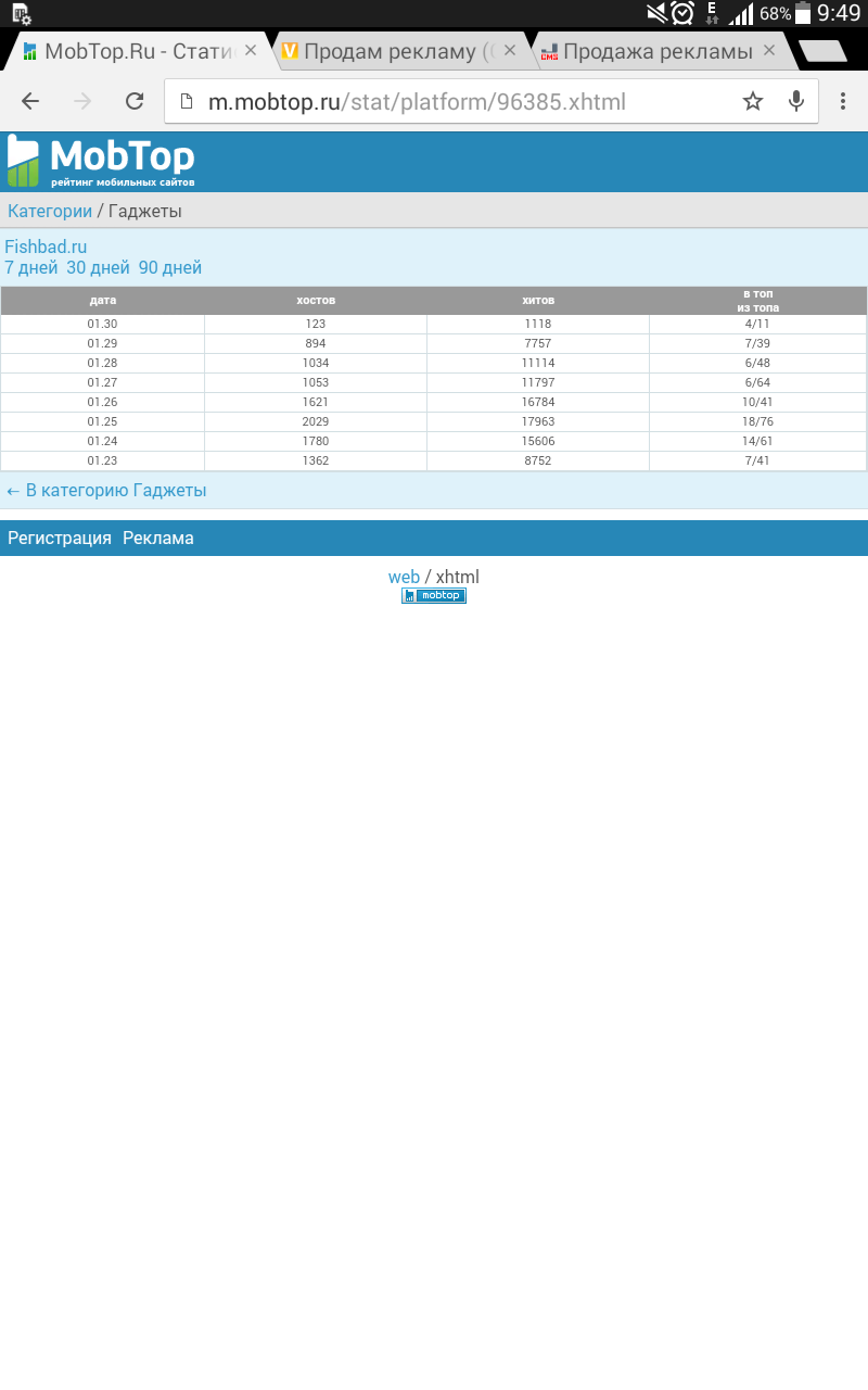 Также продам рекламу на http://fishmobi.ru