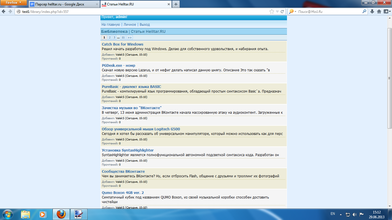 Так. Ну можно проверять. Последнюю запись блога нам в библиотеку должно добавить.