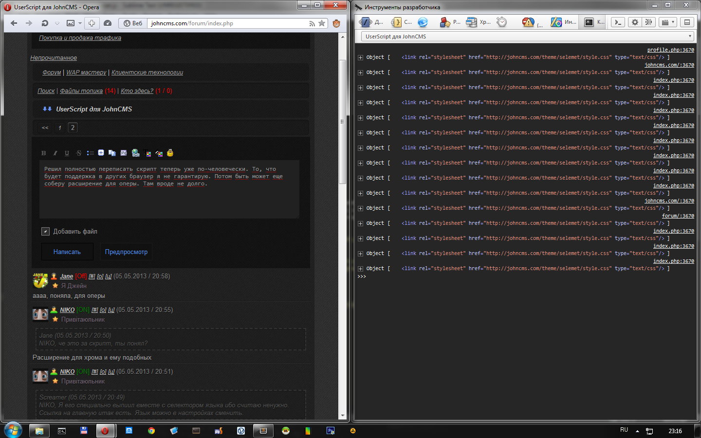 Так как теперь юзер-скрипт написан учитывая общепринятые правила, то устанавливаться он в опере будет теперь через VioletMonkey