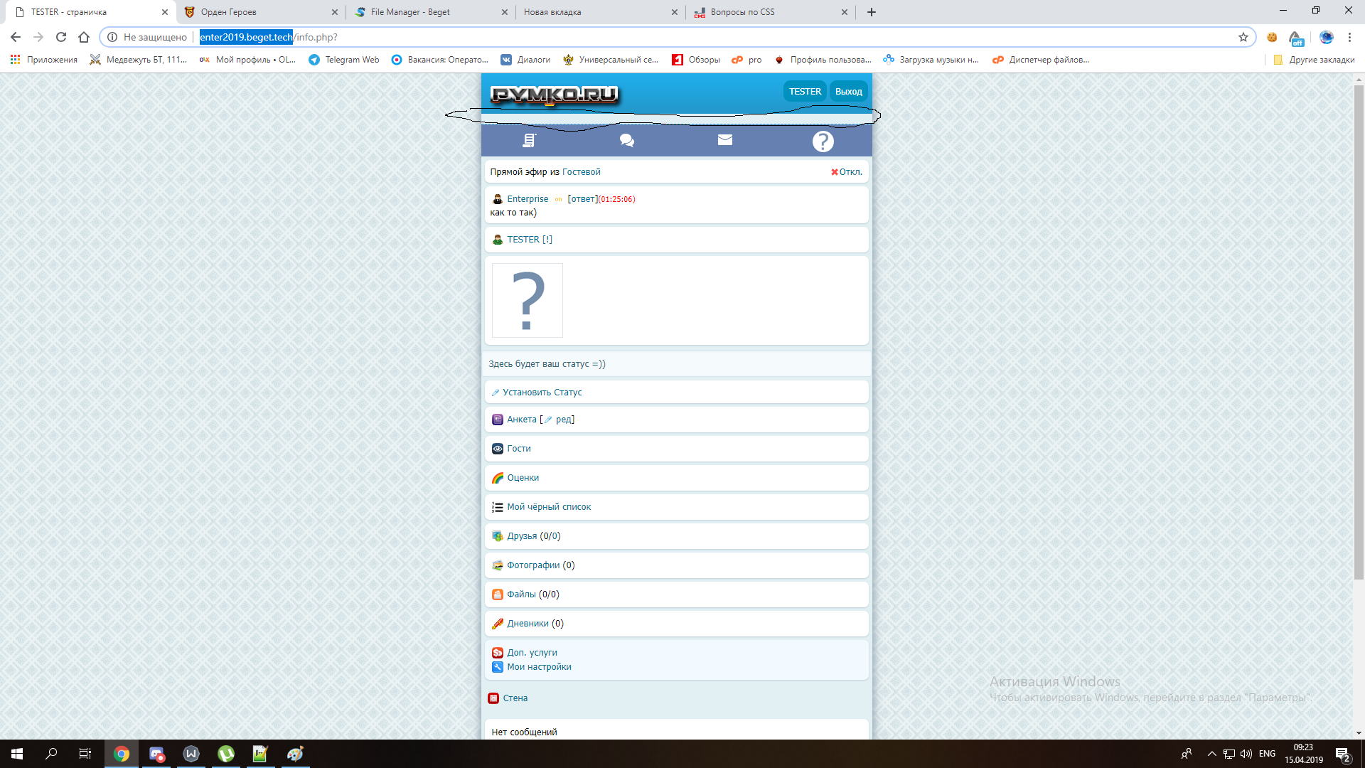 ник и пароль TESTER в виде пустого места как авториз. так и неавториз.юзеров
