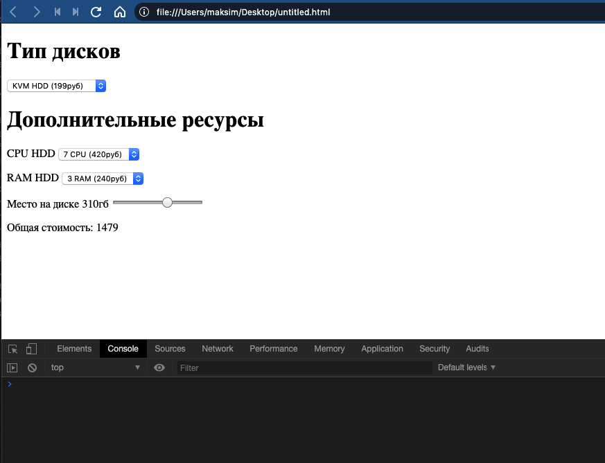 sum.innerHTML = diskType + cpuHDD + ramHDD + (diskSpace - 20);