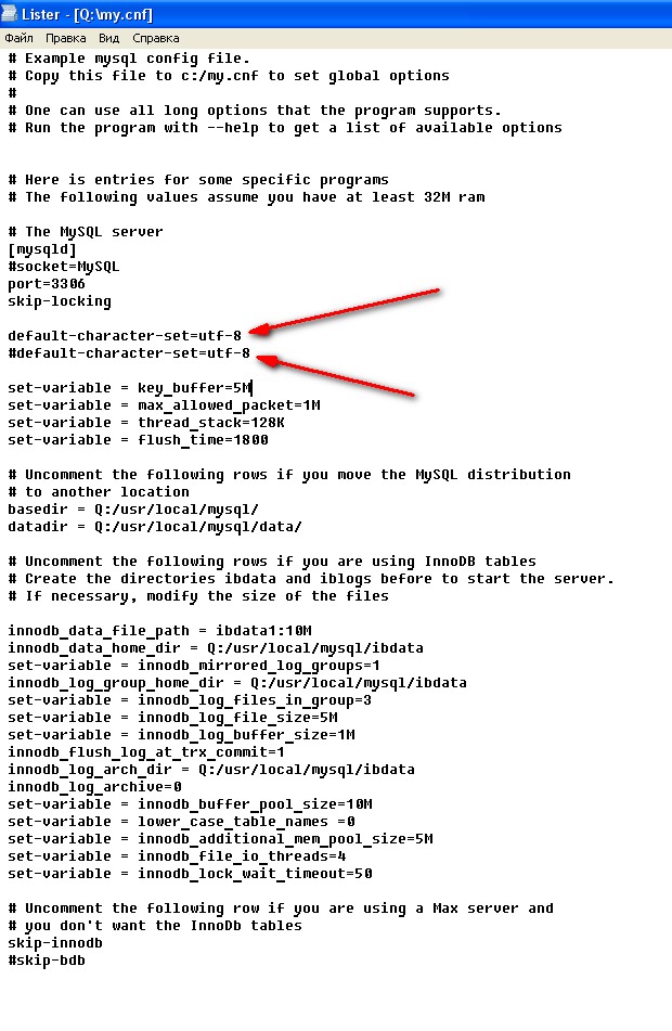 Редачил файл my.cnf но нифига