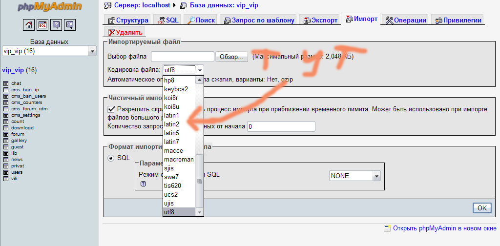 В phpMyAdmin меняется кодировка всего лишь ДЛЯ САМОЙ phpMyAdmin