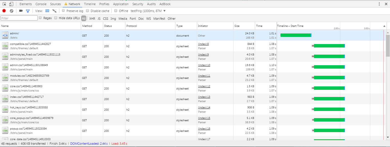 А это скрин с включенным http2 с тем же пингом в 1 секунду.