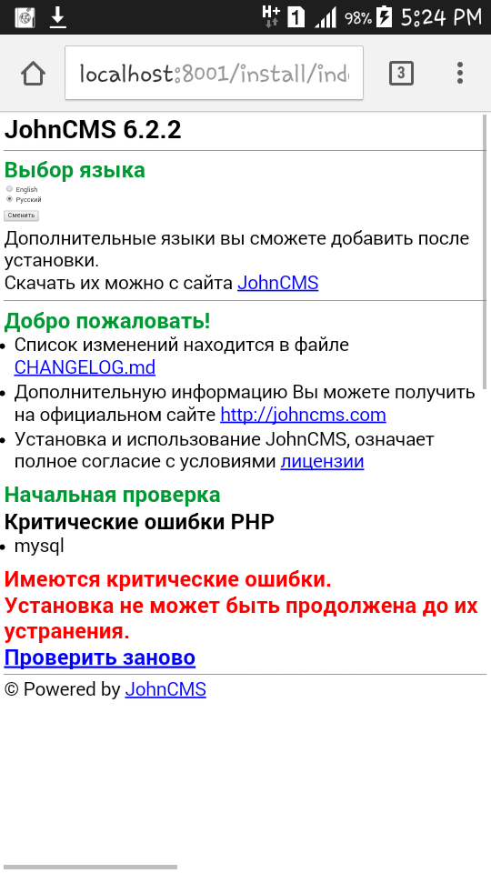 Есть кто устанавливал движок через KSWEB,