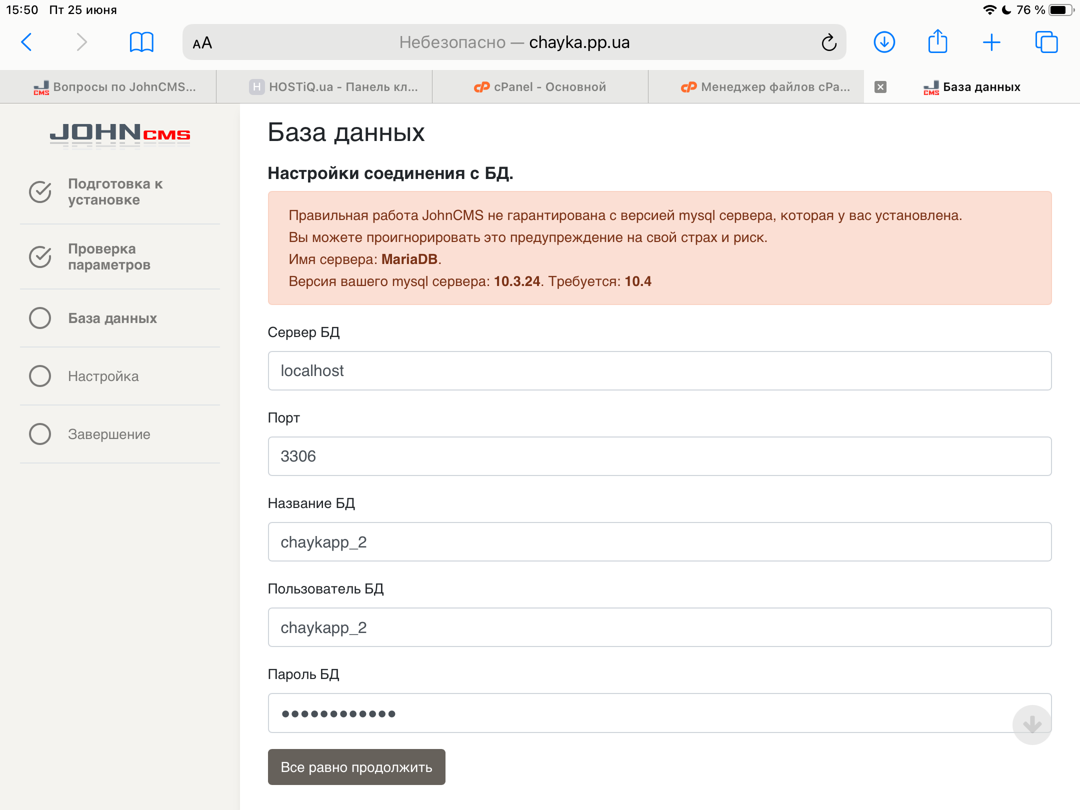 public const MARIADB_VERSION = '10.2';public const MARIADB_VERSION = '10.4';Simba, Спасибо, попробую сейчас поколдовать)