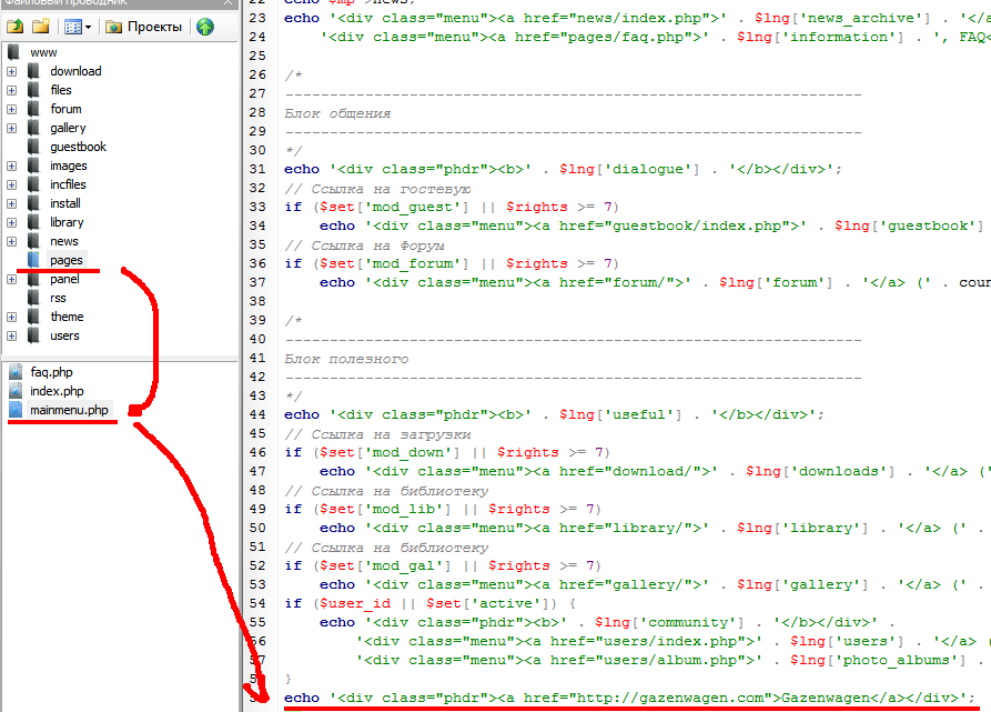 Nexus, Ссылка на газен находится в pager/mainmenu.php , а в быстром переходе в incfiles/end.php